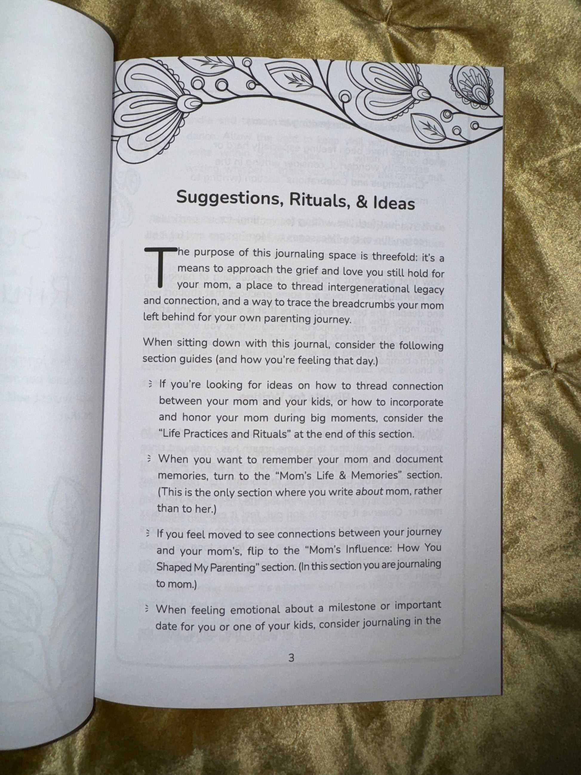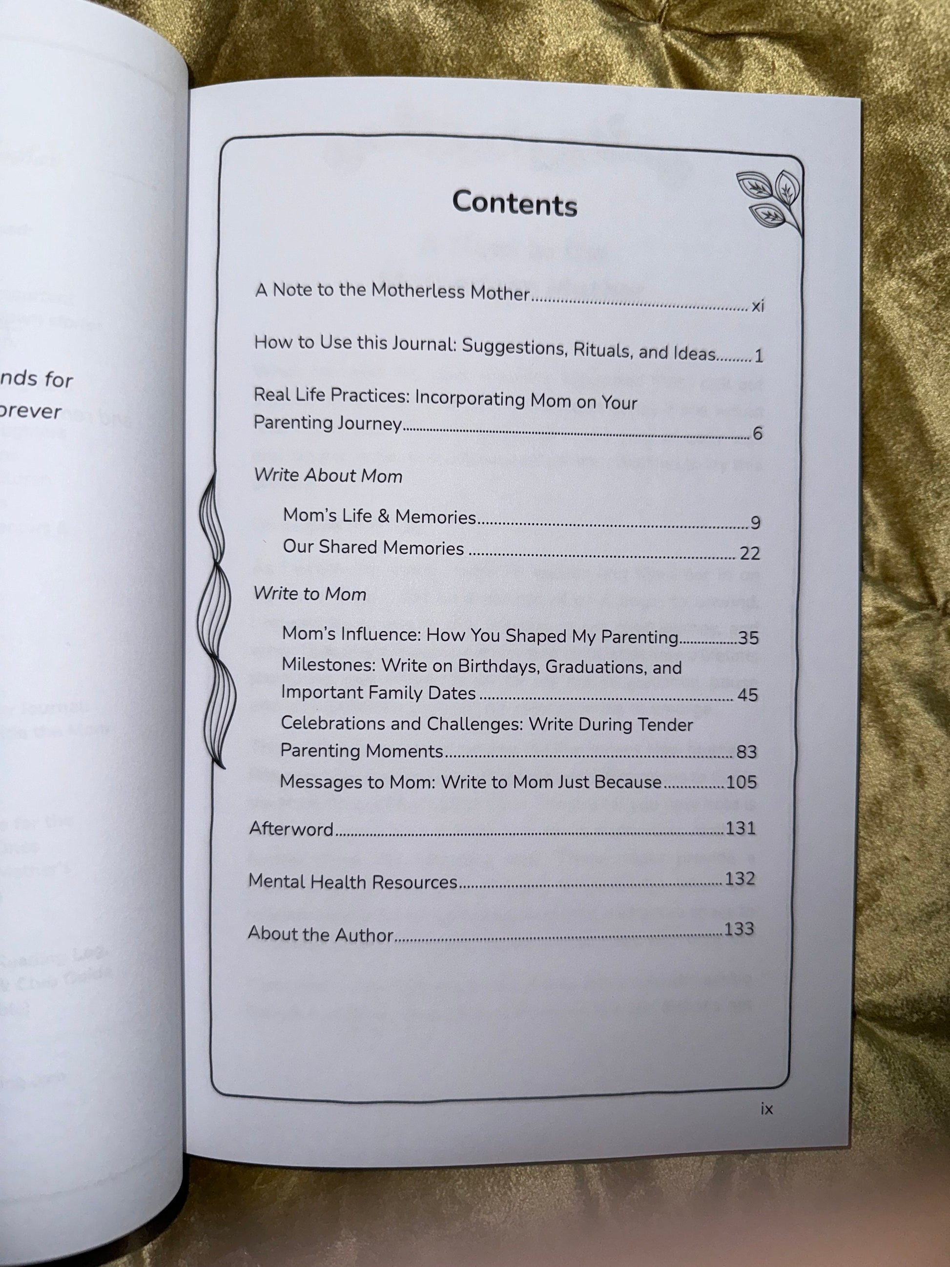 The Motherless Mother's Guided Journal provides a space to write down memories of Mom, unpack her influence on your parenting journey, and weave an intergenerational connection — no matter how long she’s been gone.