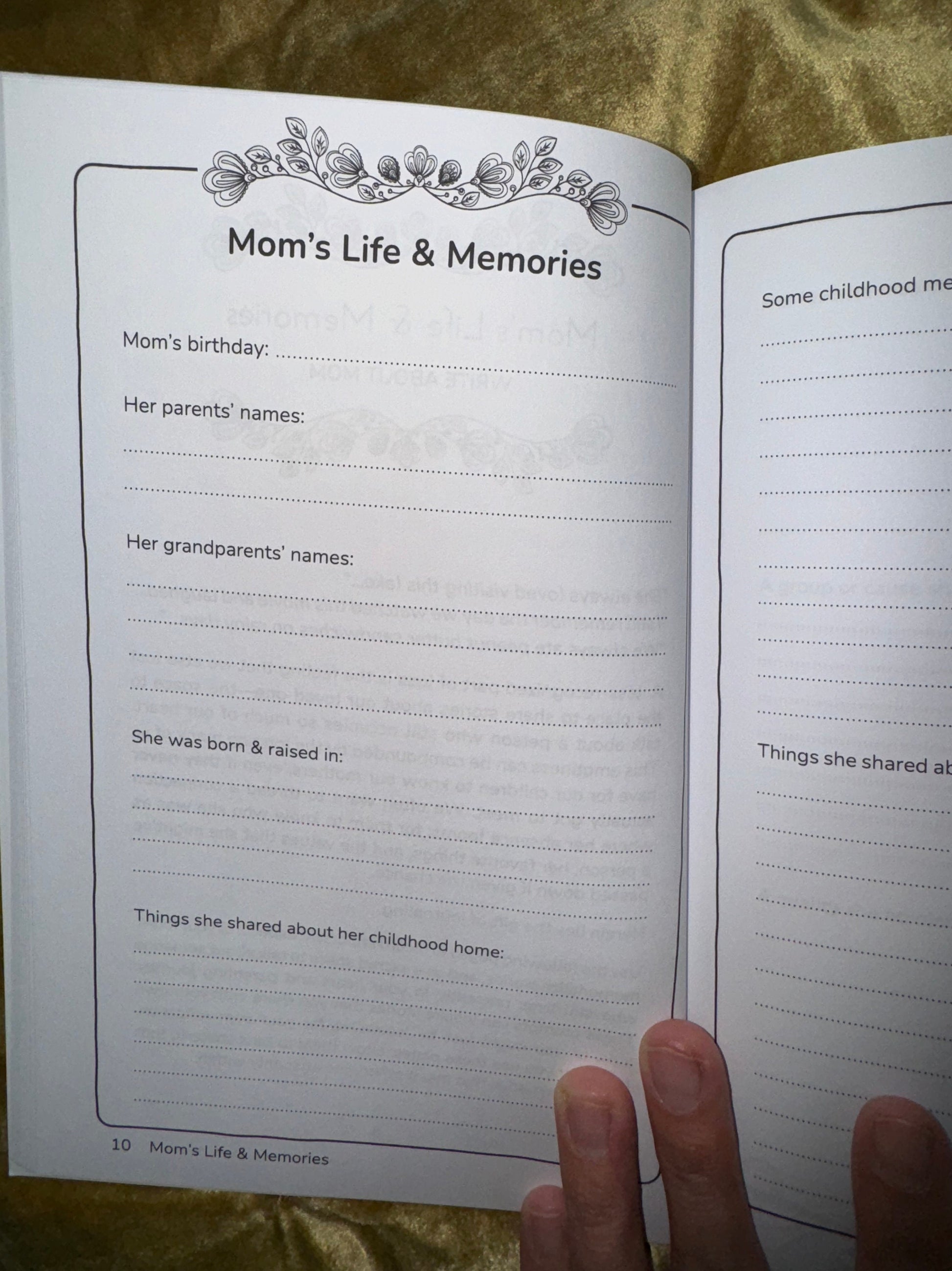 - Reflect on memories of mom, record facts about her life, and memorialize stories (like those you might one day share with your own children when telling them about their grandmother)