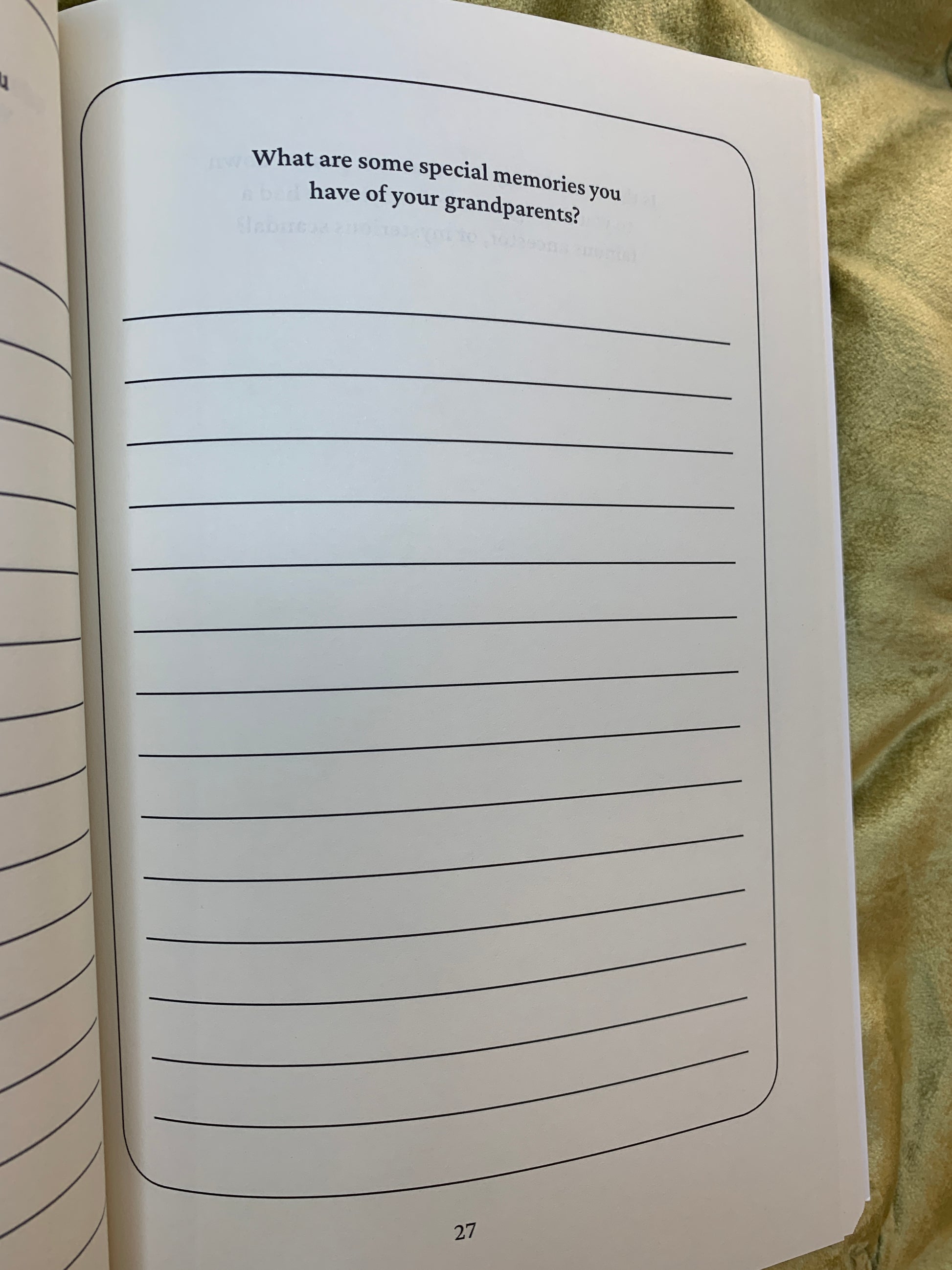 Some adult children sit with their parents and fill out the journal while asking the questions: this invites thoughtful conversations, generational connection, and intimacy. Others choose to purchase the journal for themselves, fill it out, and later present it as a gift to their children.